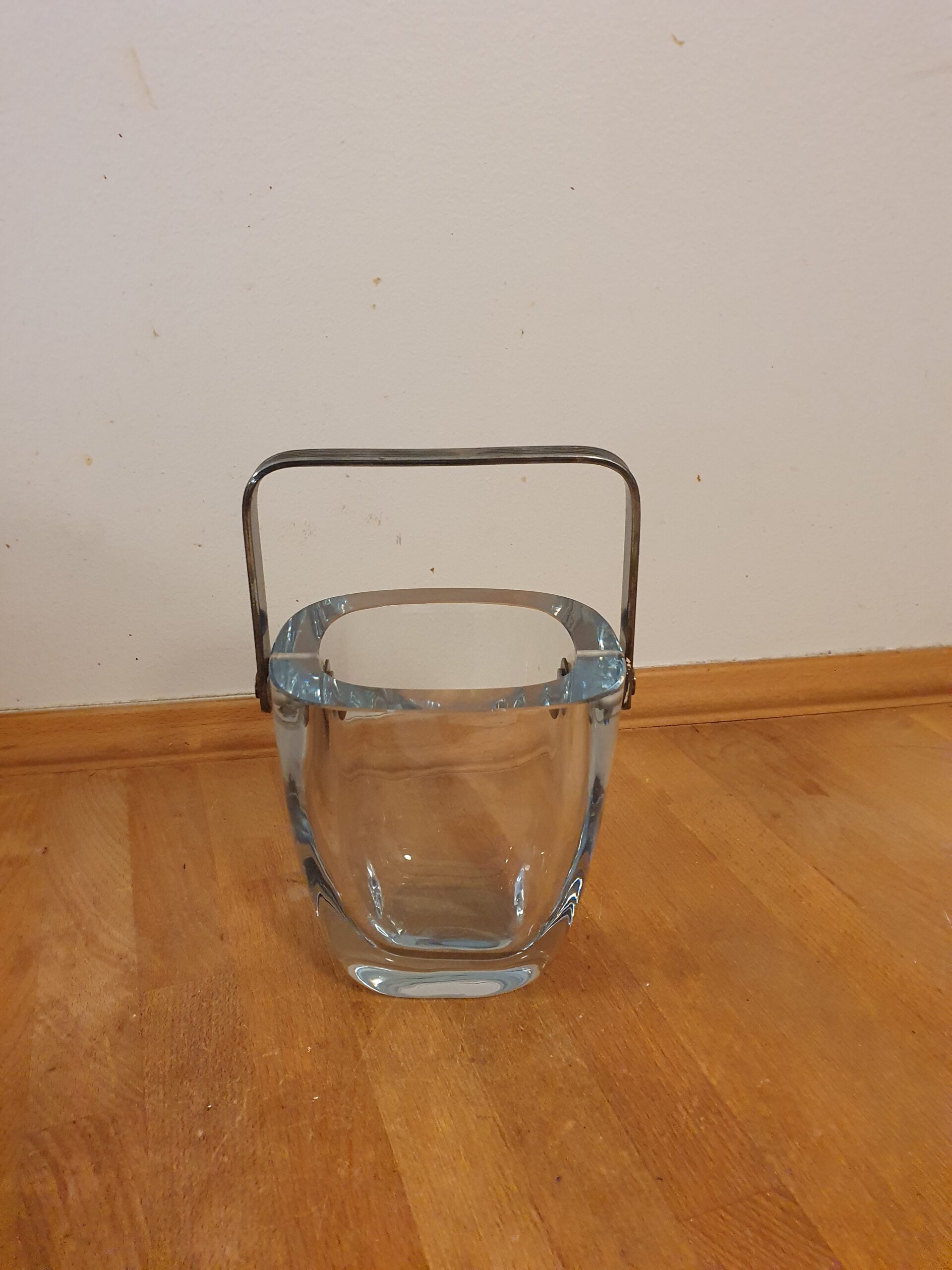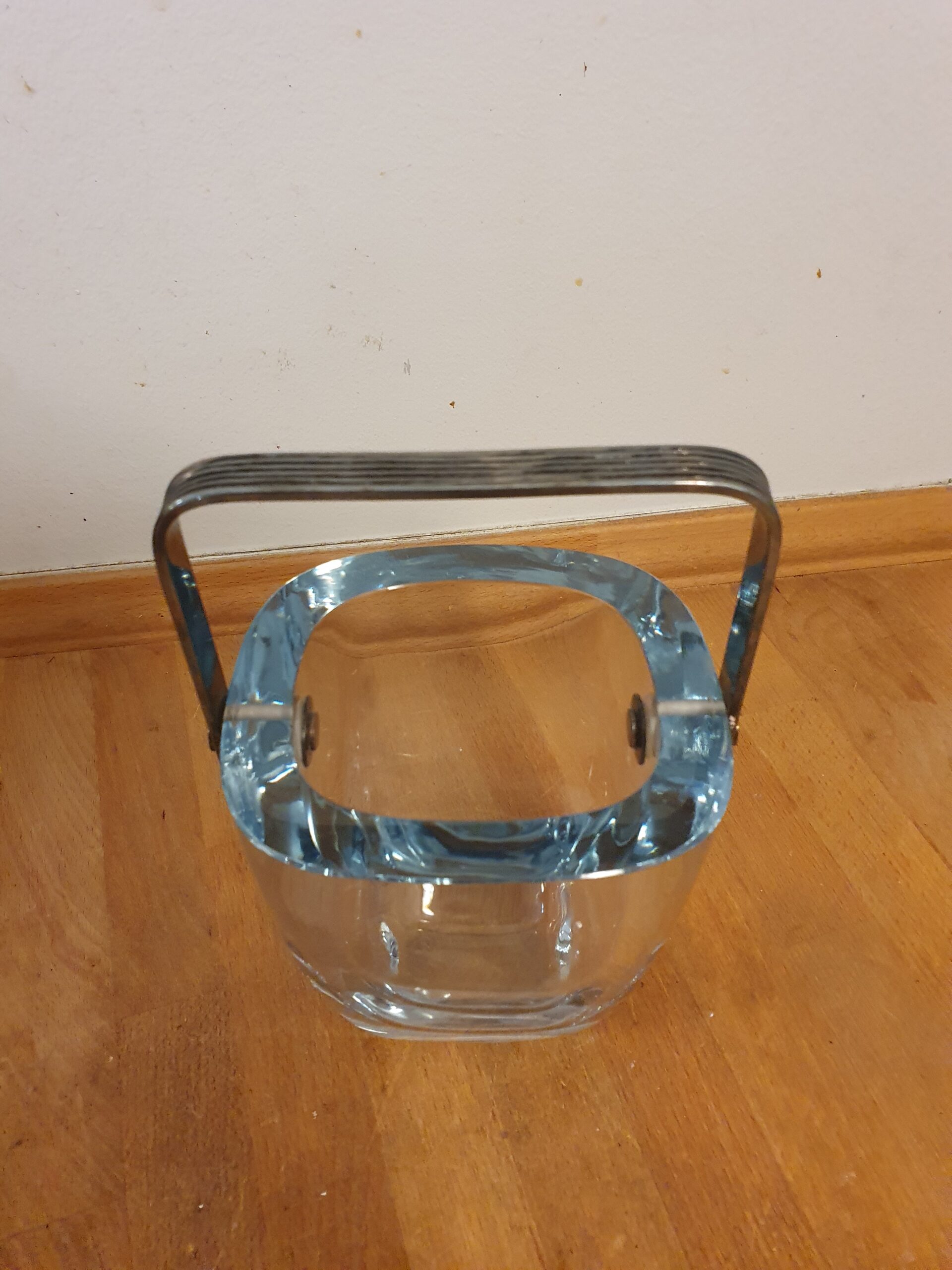 Isterningspand fra Holmegaard i blåt glas, signeret.