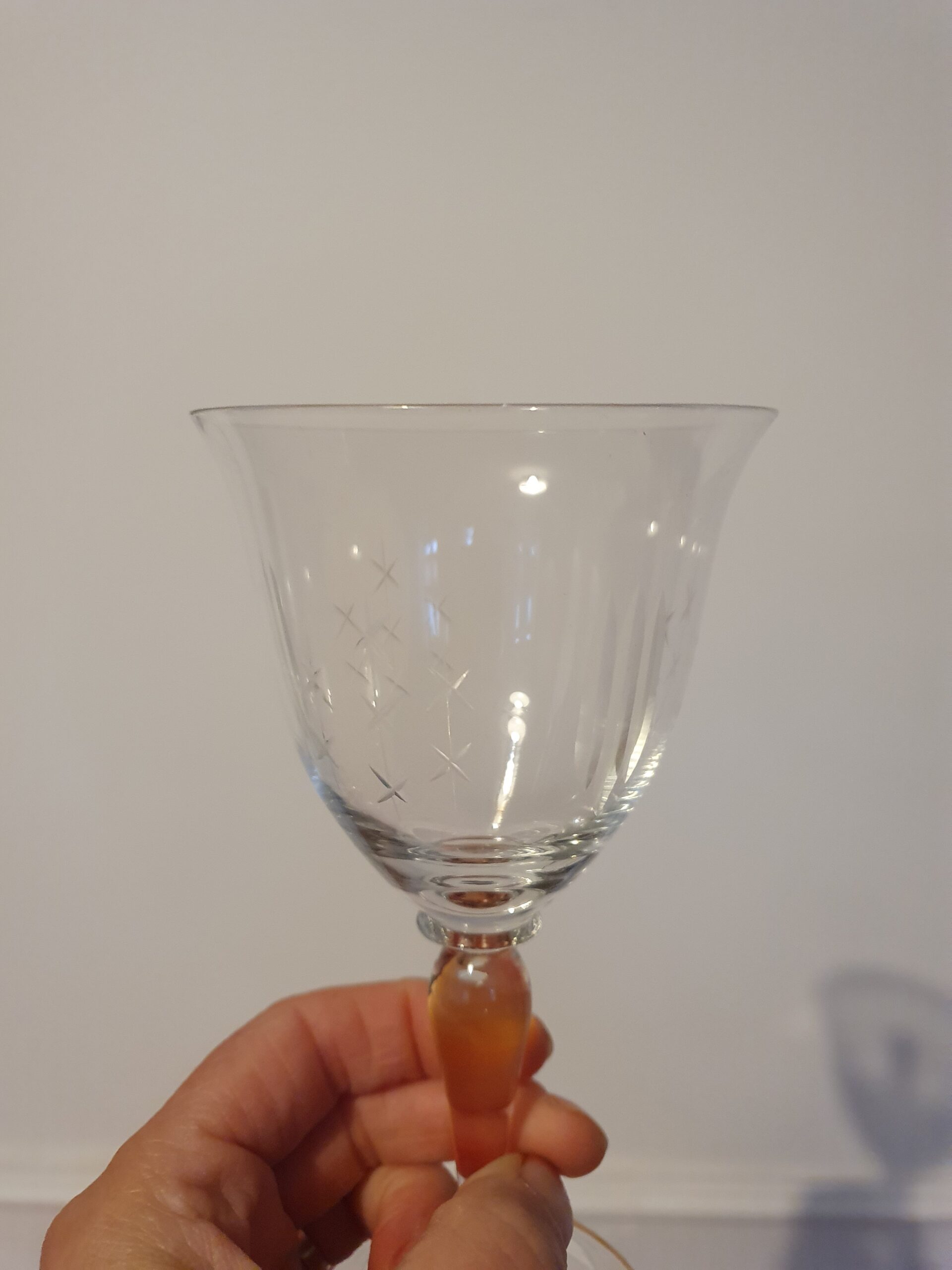 Vinglas med slebne stjerner og streger